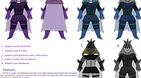 After making my sketches, I would start making a basic character sheet for the 'Dolphin Guard'. There were various colors that I tested out to try and figure what would work best for this dolphin civi...